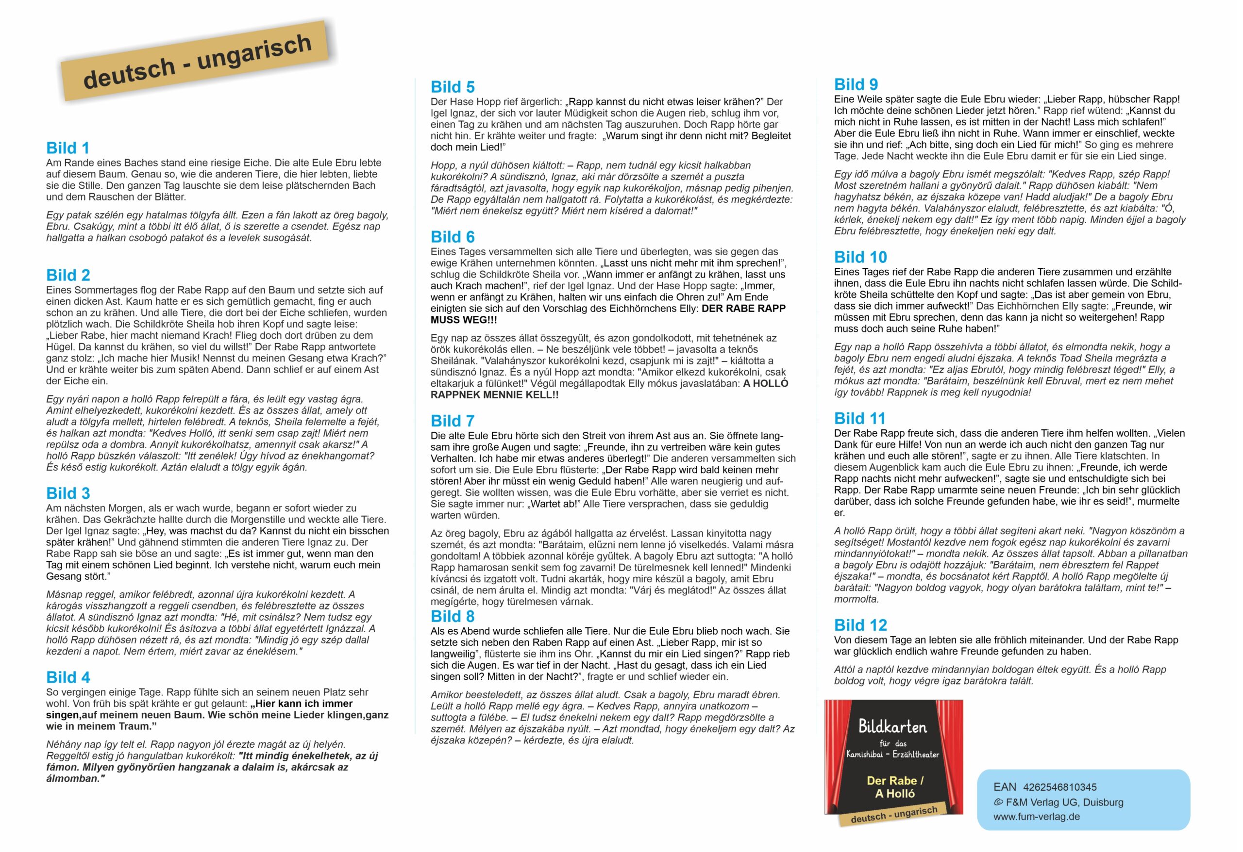 Der Rabe – Bildkarten für das Kamishibai-Erzähltheater in deutsch / ungarisch