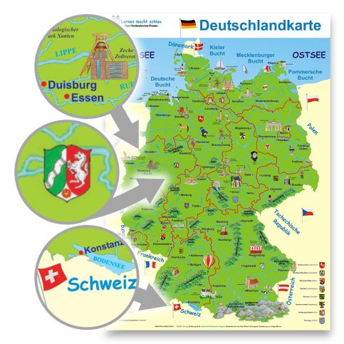 Die Deutschlandkarte wurde für Kinder im Kindergarten, in der Schule und im Elternhaus gestaltet.