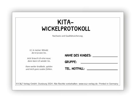 “Kita-Wickelprotoll als Nachweis und Qualitätssicherung. Für jede Erzieherin und Tagesmutter. Für Kitas – Erzieher – Tagesmütter und Kinderpfleger.”