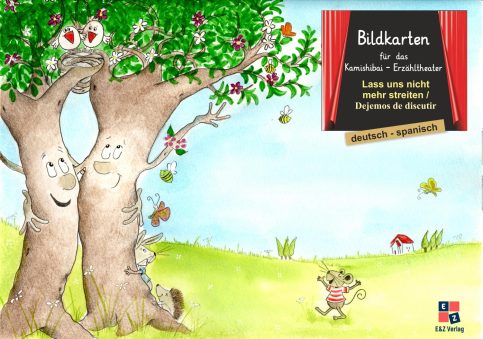 Alle Kamishibais und Kniebücher sind in 27 verschiedenen Sprachen erhältlich: Alles war friedlich in dem kleinen Garten. Und alle Tiere und Pflanzen lebten glücklich miteinander. In diesem Garten standen zwei Bäume. Ein Apfelbaum und ein Pfirsichbaum. Tagelang stritten sie, wer die schöneren Blüten hatte und wer besser duftete…