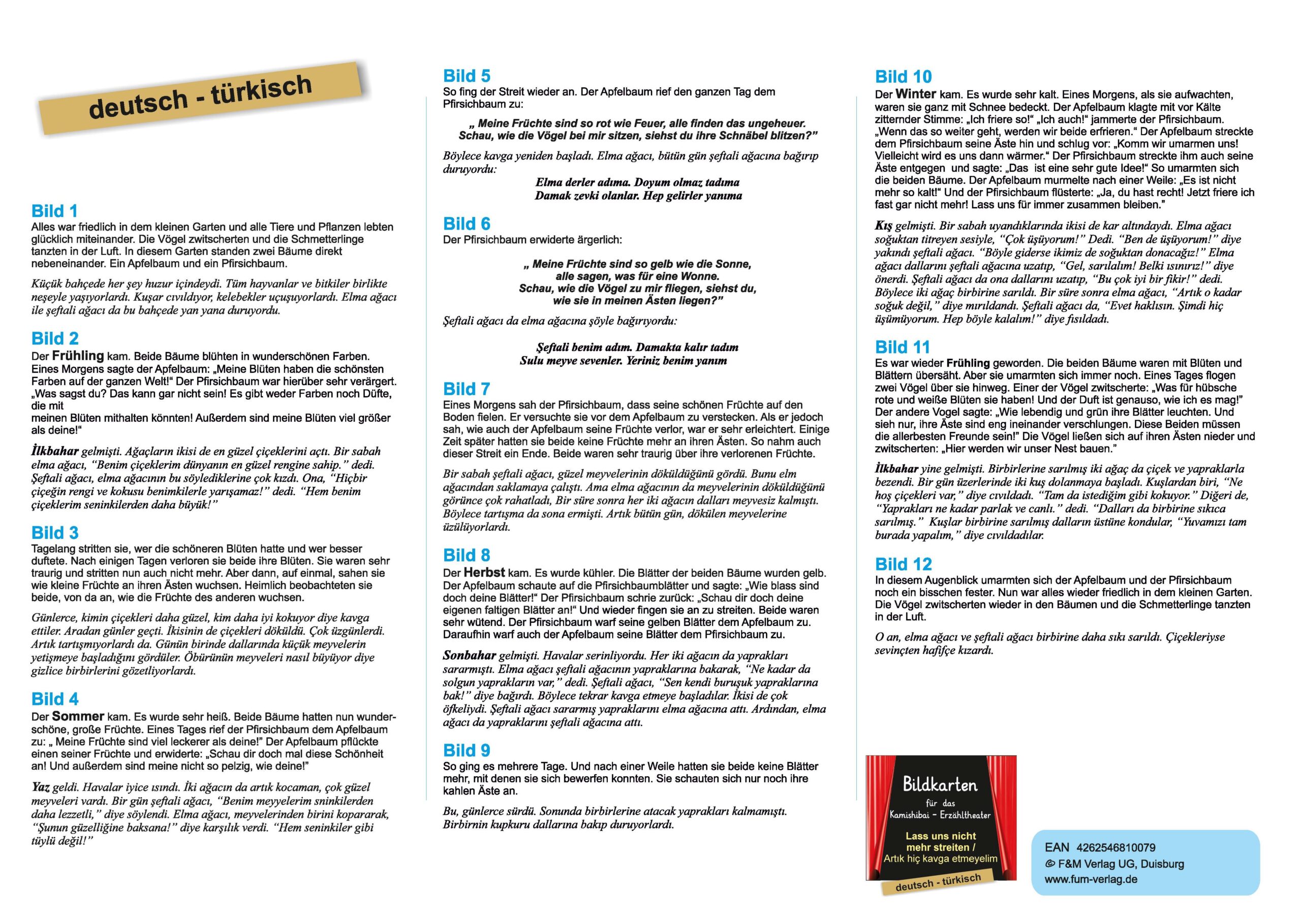 Zweisprachige Bildkarten der Bilderbuchgeschichte “Lass uns nicht mehr streiten” in deutsch / türkisch
