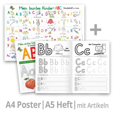 Als Besonderheit sind alle Tiere nach dem Alphabet um das Poster geordnet. So lernen die Kinder spielerisch das ABC und die Zootiere kennen.