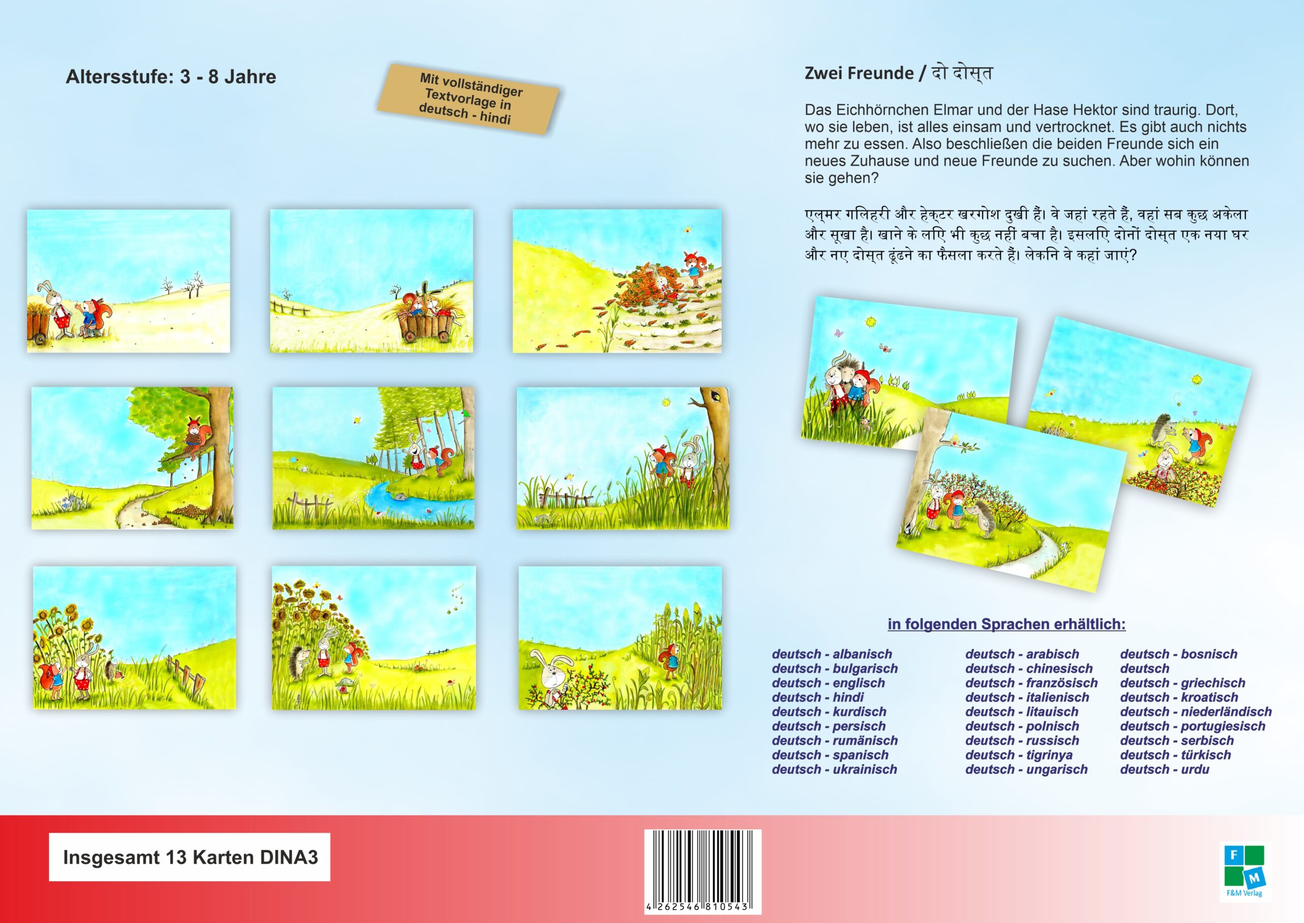 Zweisprachige Bildkarten der Bilderbuchgeschichte “Zwei Freunde” in deutsch – hindi