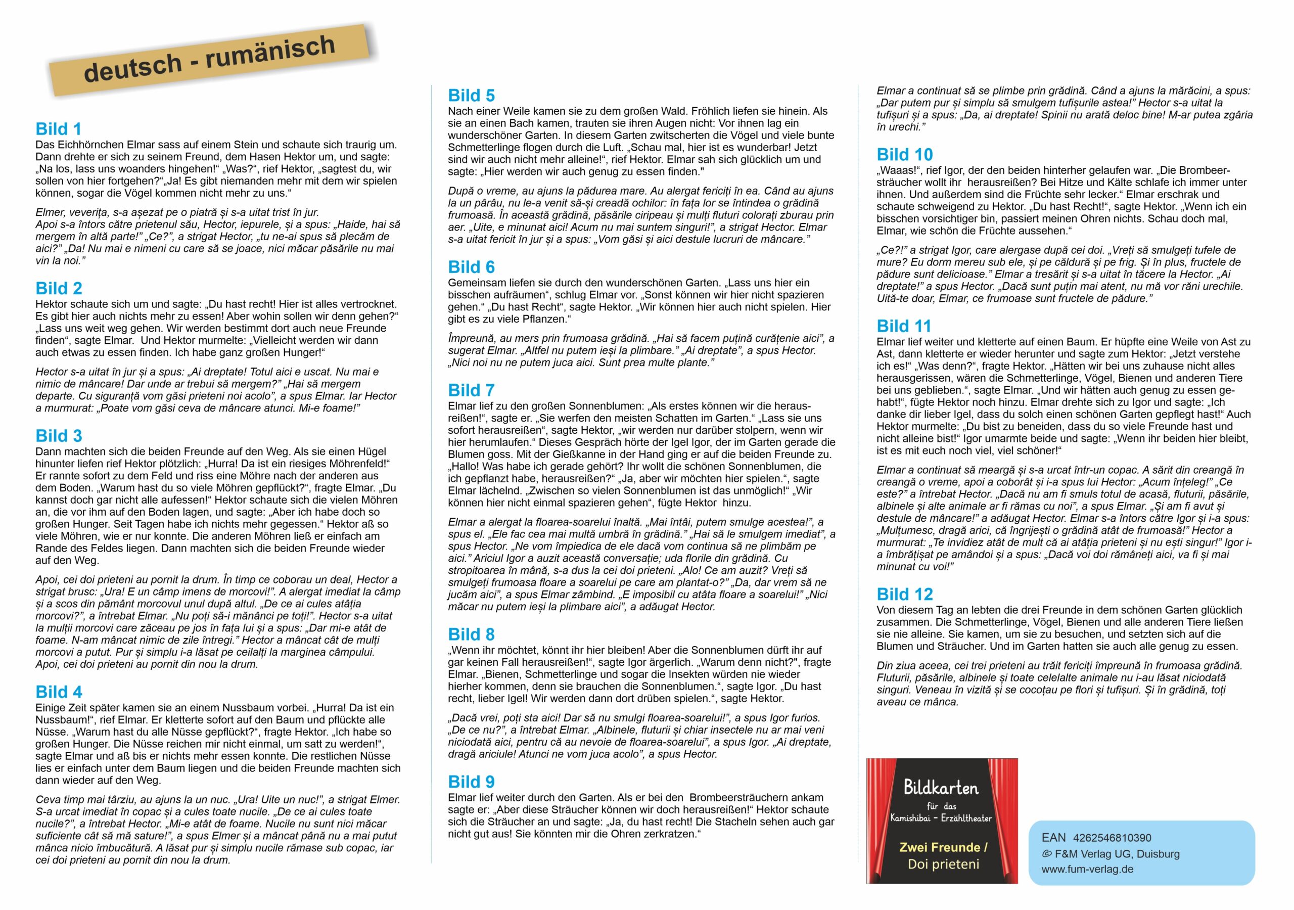Zweisprachige Bildkarten der Bilderbuchgeschichte “Zwei Freunde” in deutsch – rumänisch